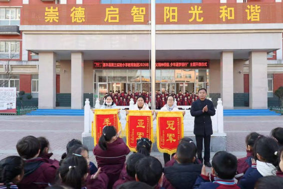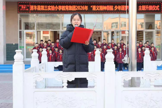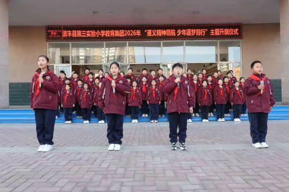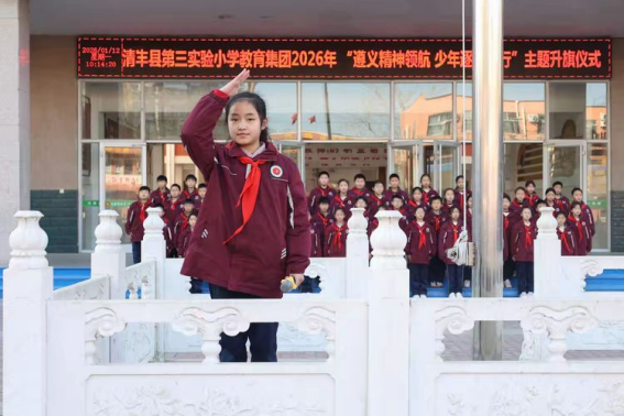 岁序更替,新元肇启。值此辞旧迎新之际,清丰县第三实验小学教育集团举行“遵义精神领航 少年逐梦前行”主题升旗仪式。我们回望峥嵘岁月,感悟革命先辈的坚定信仰;我们立足当下校园,凝聚师生奋进的磅礴力量;我们展望崭新征程,怀揣赤子之心奔赴山海。愿全体师生以遵义精神为指引,以理想信念为灯塔,将红色基因融入血脉,在新的一年里勇毅前行,让每一个梦想都扬帆起航。