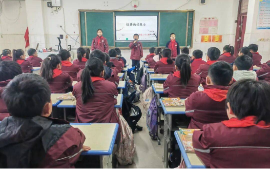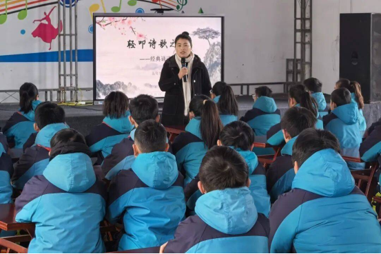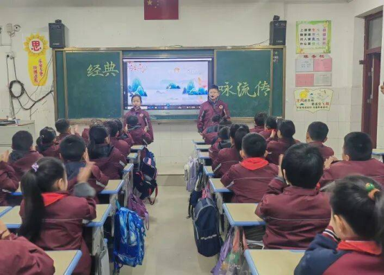 评审小组依据诵读流畅度、情感表达、队形纪律、整体风貌四大维度,对各班级展示情况进行现场评比。县教研室教研员魏迎迎老师立足文化育人高度作专业指导,既充分肯定了活动在传承经典、涵养素养方面的扎实成效,以及各班级精心筹备、创意呈现的亮点特色,也针对性地提出了“深化经典与生活的联结、提升诵读与理解的融合”等改进建议,为后续经典诵读教育的提质升级指明方向,实现了“以评促学、以评促优、以评促改”的活动目标。