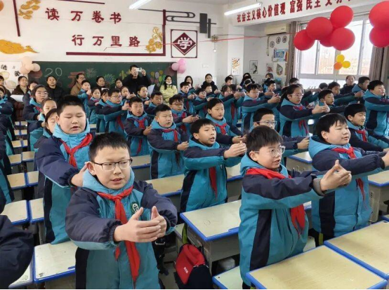 不同学段各有侧重,不同班级各具特色:有的班级注重诵读流畅度,字正腔圆、一气呵成;有的班级强调情感表达,抑扬顿挫、感染力十足;有的班级精心设计队形,队列整齐划一,精神饱满。虽风格各异,但都围绕经典传承的核心,在“和而不同”中实现“美美与共”,构成了校园里一道亮丽的文化风景线。