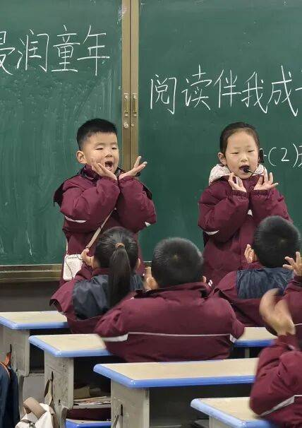 展示期间,校园内晨光与书香相伴,各年级依次呈现精彩篇章。1月5日至6日,一、二年级的小朋友身着整齐校服,以稚嫩而真挚的声音开启诵读之旅。他们或集体齐诵《弟子规》,字正腔圆;或小组接力诵读经典童谣,活泼灵动,一张张认真的小脸,尽显对经典的喜爱,展现出低年级学子的纯真风采。