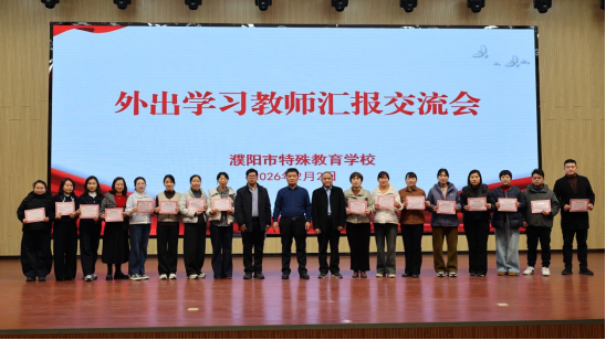岁月更替,辞旧迎新,汇智聚力,研学不止。2026年2月2日,濮阳市特殊教育学校一年一度的学习汇报交流会如约而至。十八位教师代表依次登台,带着外出学习的丰硕成果、深耕教学的深刻反思以及对教育未来的炽热憧憬,呈现了一场涵盖理念前瞻、教学创新、技术融合、师德、安全等多个维度的精神盛宴,全面展现了学校教师队伍蓬勃向上的专业生态。