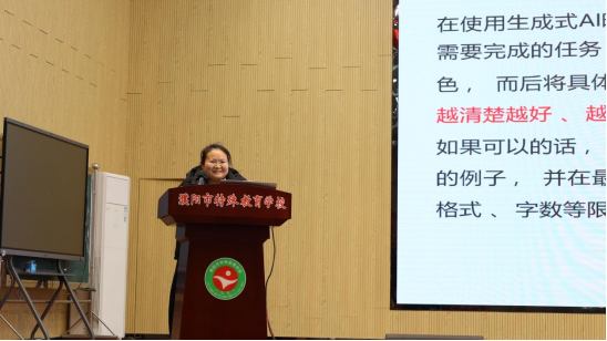 教师的视野决定教育的广度与深度。秦晗老师在《智力障碍学生的随班就读及教学策略》中,不仅分享了利用DeepSeek等AI工具辅助进行个性化教学设计的具体技巧,还探讨了融合支持策略。李翠霄老师分享了《普特融合与写作策略》,致力于在融合教育背景下,寻找提升所有学生书面表达能力的有效途径。