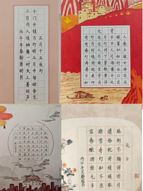 与家长共话元宵传说,共赏传统习俗,共读经典诗词,在诗词雅韵与民俗故事中感受节日底蕴。同学们以笔为媒,创作元宵硬笔书法或马年元宵主题手抄报,将节日祝福、文化理解与马年吉祥之意融于笔墨色彩之间,一笔一画尽显匠心,一纸一画传承文脉。