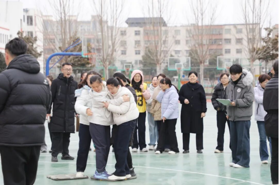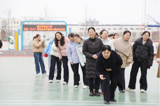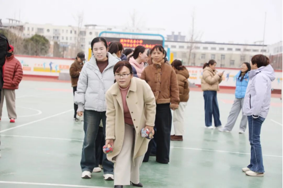 骐骥驰骋,势不可挡,策马扬鞭奔新程。为庆祝“三八”国际妇女节,丰富教职工文体生活,增强团队凝聚力,以昂扬斗志投入新学期的工作,3月6号下午,学校工会在东操场举行了“马不停蹄乐新颜”教职工趣味运动会。运动会设夹纸运包、沙包投准、摸石过河三个比赛项目,近200名教职工参加。