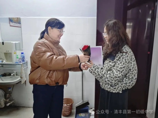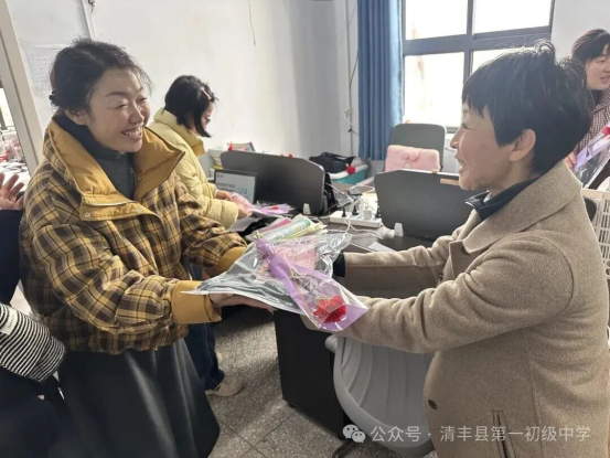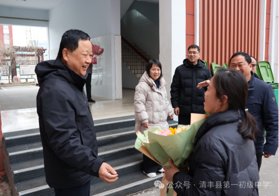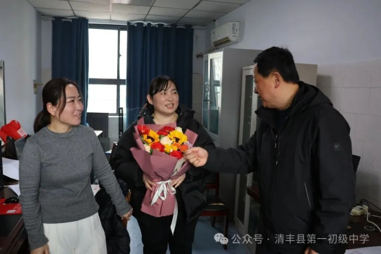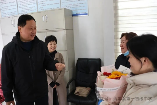 春风有信,花开有期。在第116个“三八”国际劳动妇女节来临之际,清丰县第一初级中学校委会全体成员深入一线,走进各岗位,向辛勤耕耘在各条战线上的女教职工送上节日祝福。一束束鲜花芬芳馥郁,一份份礼物情意深重,传递着组织的关怀与温暖。