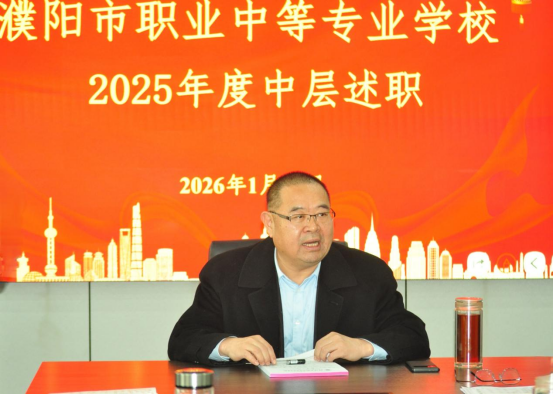 为全面总结过往工作成效,梳理短板不足,凝聚发展共识,1月23日,濮阳市职业中等专业学校召开2025年度中层干部述职报告会。学校领导班子成员、全体中层干部参会,会议由党委副书记、 ...