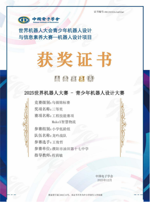 2025年12月28日,2025世界机器人大赛乌镇锦标赛圆满落幕。濮阳市油田第十七中学高禾一、王俊哲同学作为河南省代表队成员参赛。在激烈的角逐中,他们凭借默契的团队配合、扎实的 ...