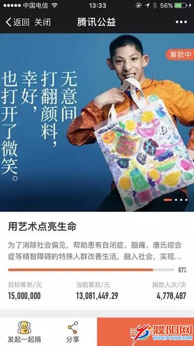 截至8月29日14:00,腾讯公益平台上“用艺术点亮生命”公益项目筹款已达1300余万元,共有477万人次参与捐款。